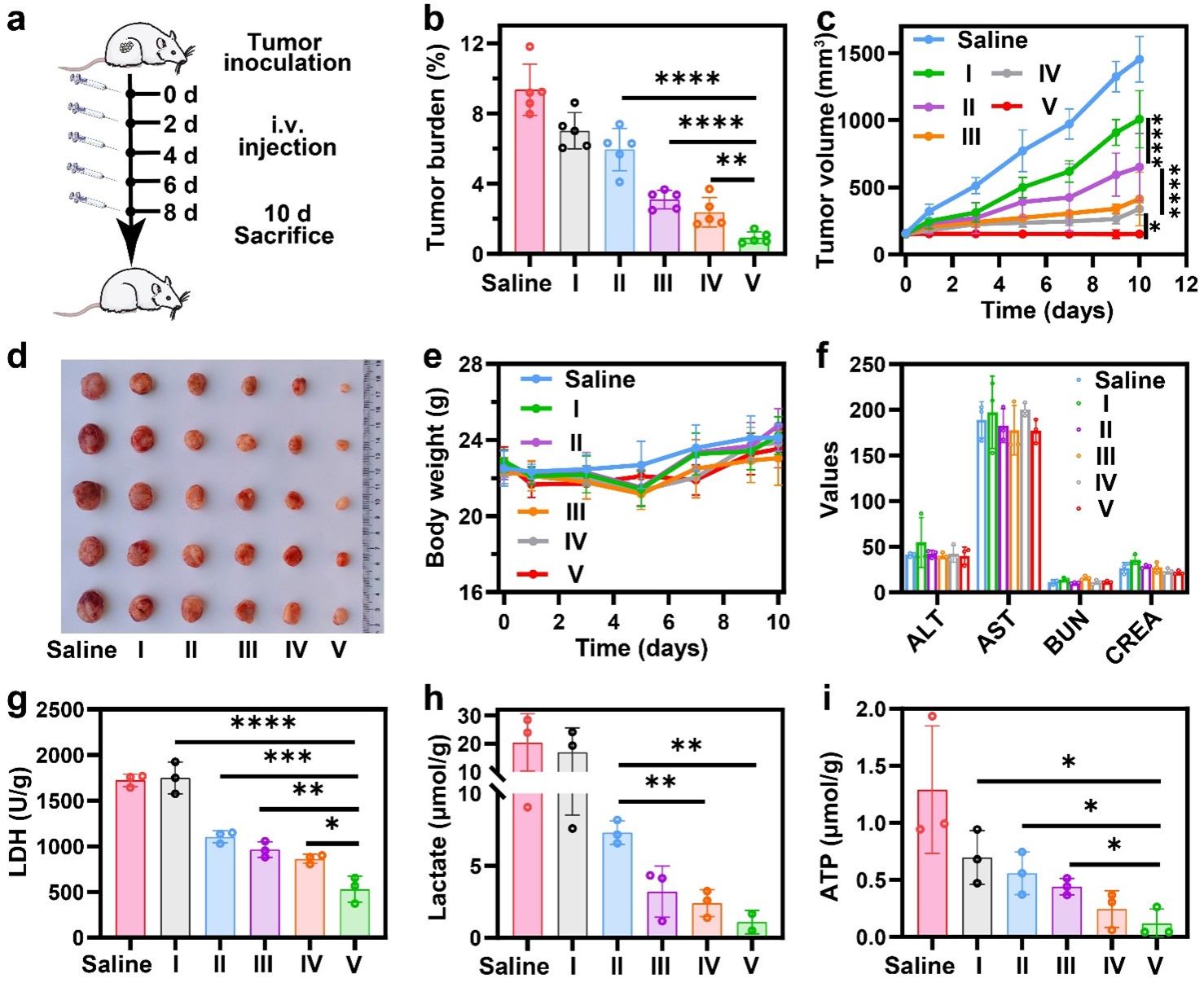 图5. 纳米耗竭器的体内药动学、体内分布及体内抗肿瘤活性的探究。