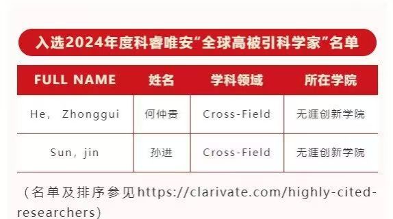 2位学者入选2024年度科睿唯安“全球高被引科学家”名单